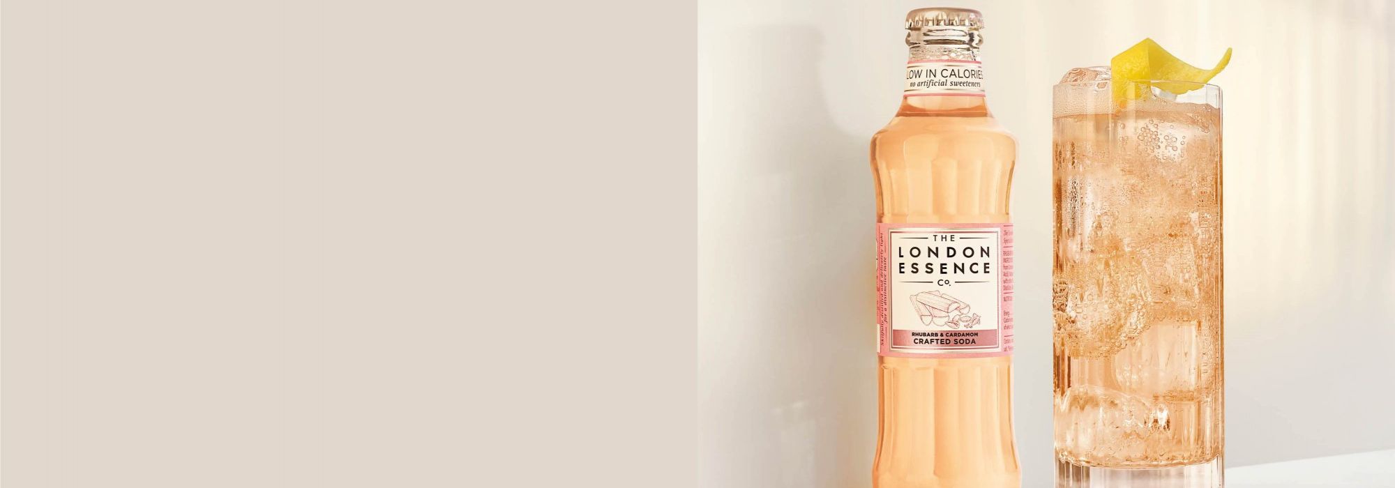 - Top up with London Essence Rhubarb and Cardamom crafted soda