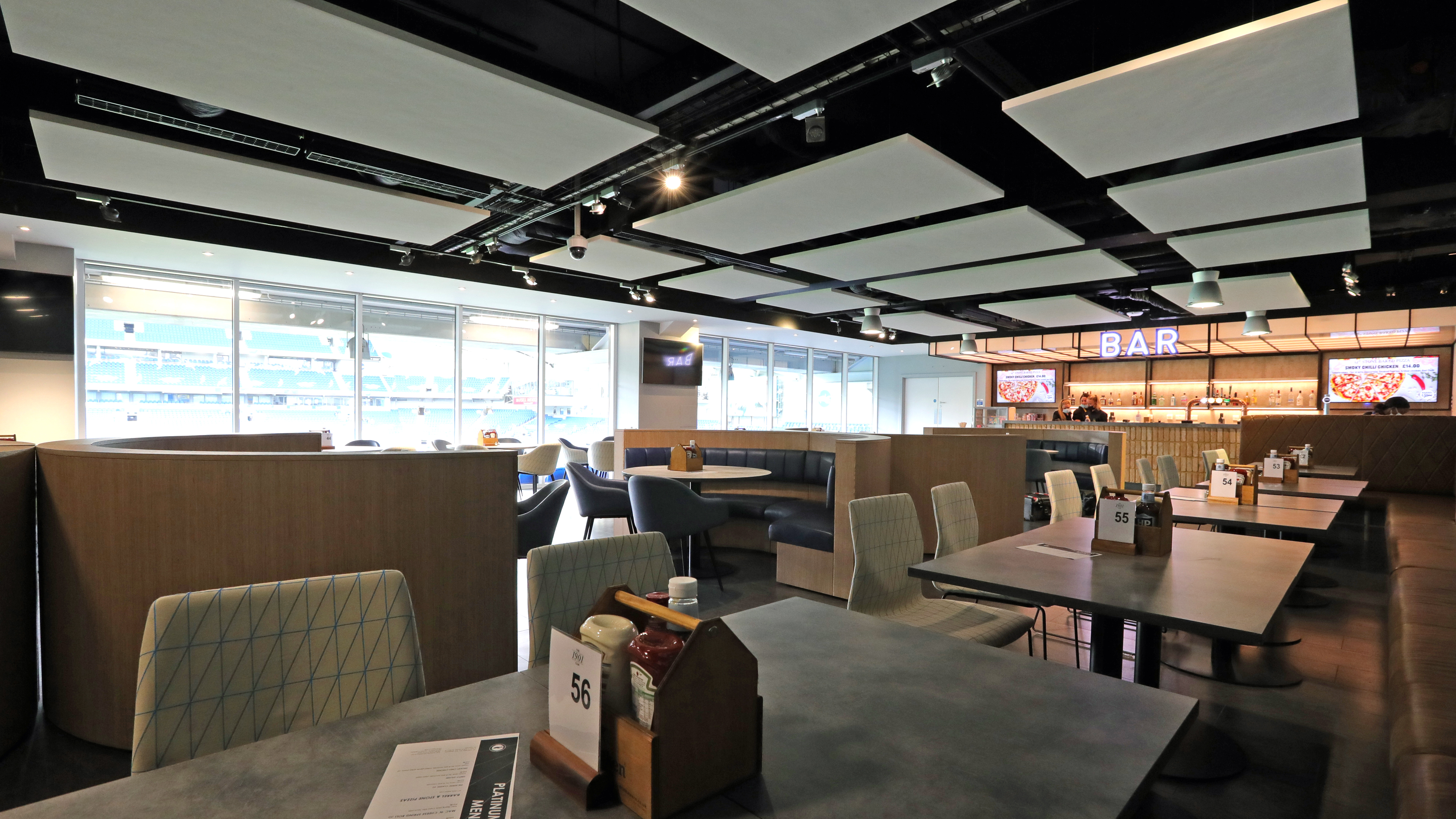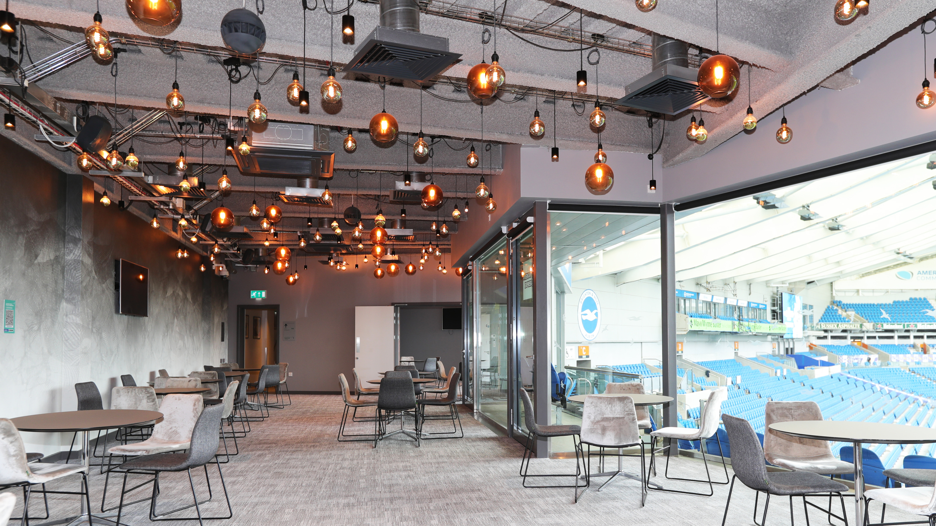 Located on the third floor. this lounge features a double aspect view, including a stunning overlook of the pitch.