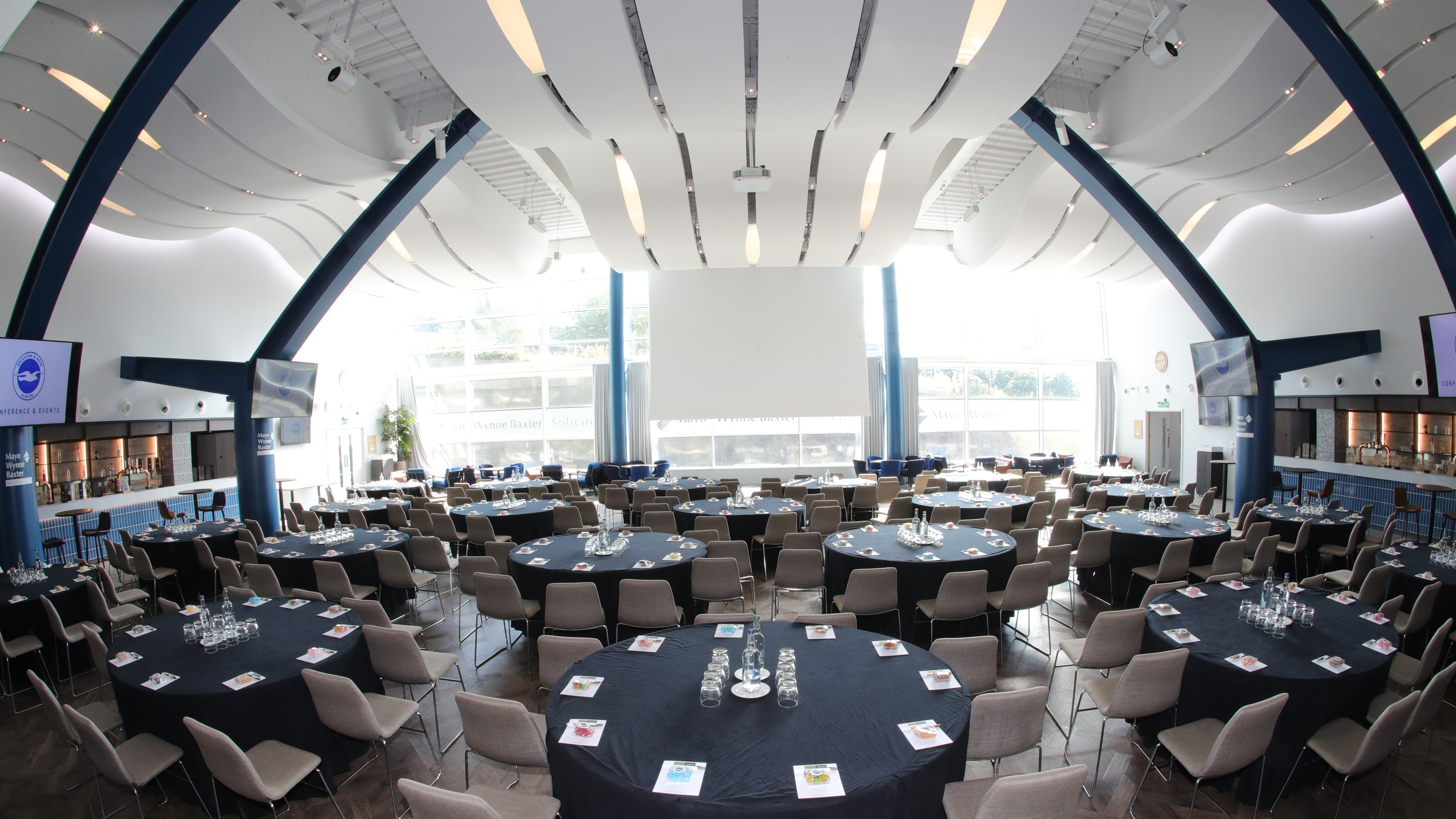 Our largest lounge, this grand space boasts the double height ‘wave ceiling’ everybody is talking about. The architectural masterpiece is a beautiful backdrop for any event and includes a stunning floor-to-ceiling glass façade.