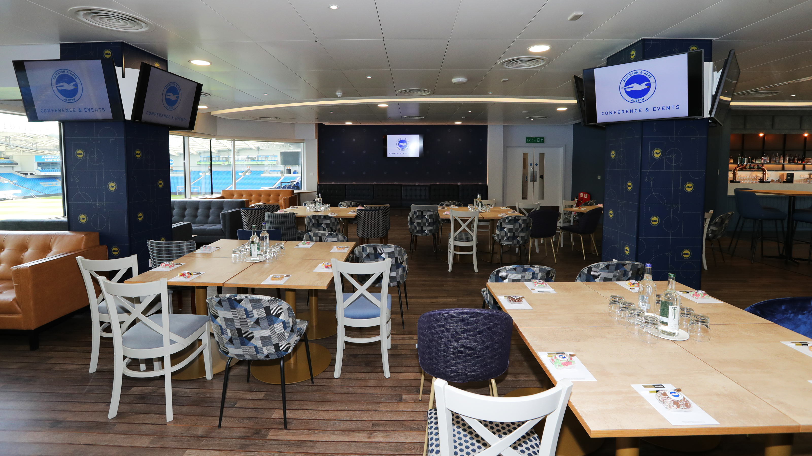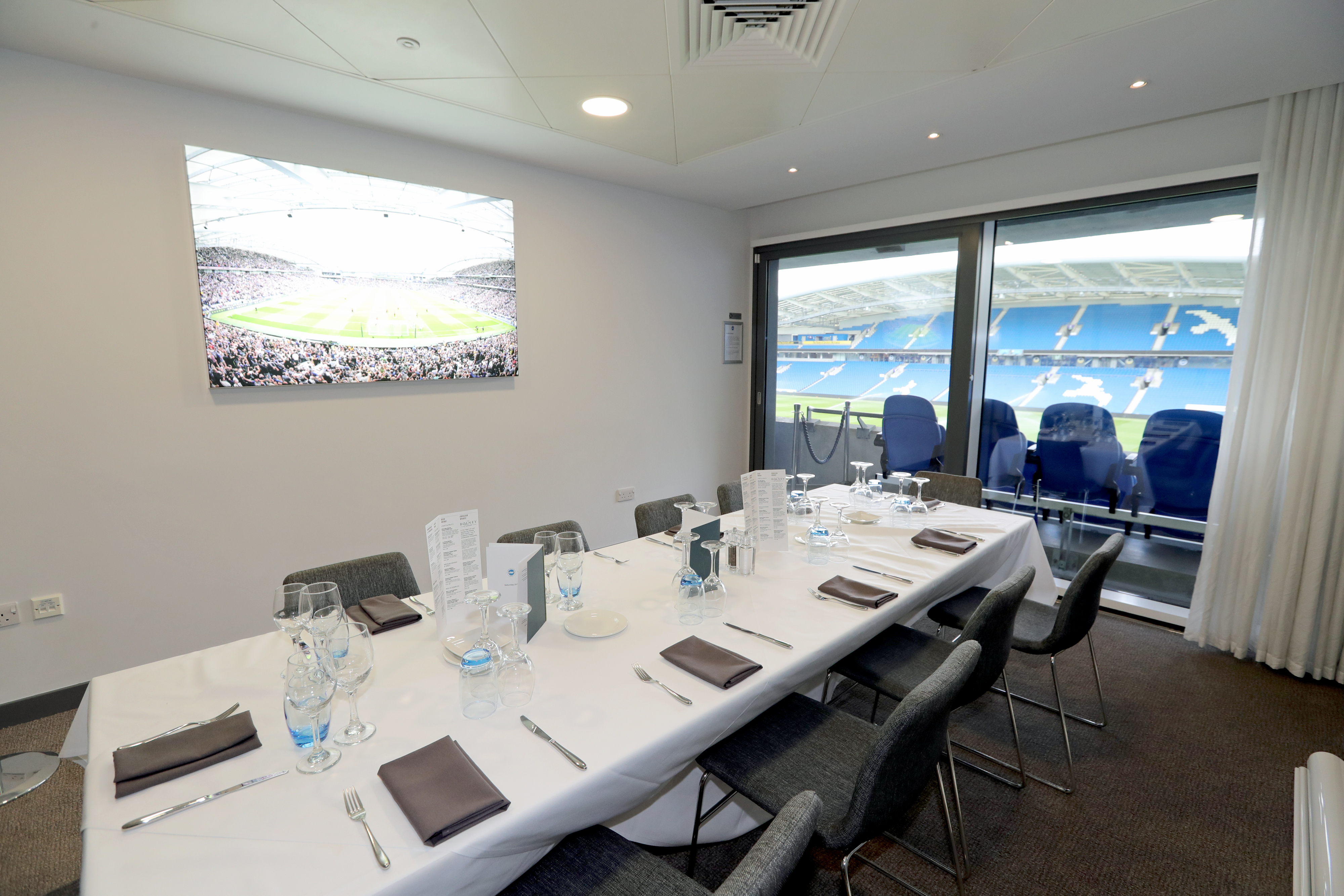 These intimate spaces have superb views of the pitch, plus a panoramic of the Downs, and provide an excellent setting for a small dinner or board presentation.